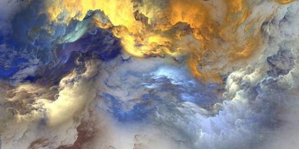 - The wonderful painting shows abstract golden and blue mysterious clouds. It will add bright colors to your bed room.