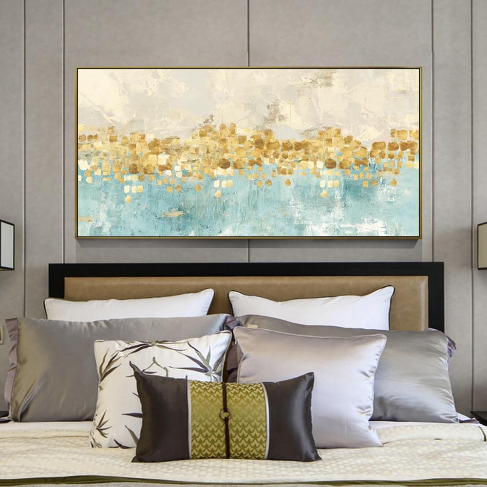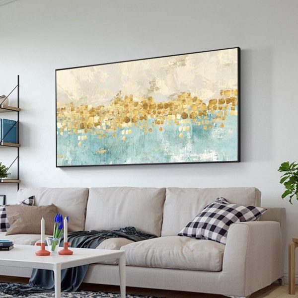 - The painting shows abstract golden dots in soft colors. It will be an excellent decoration for a modern interior. It is a wonderful choice for your bed room.