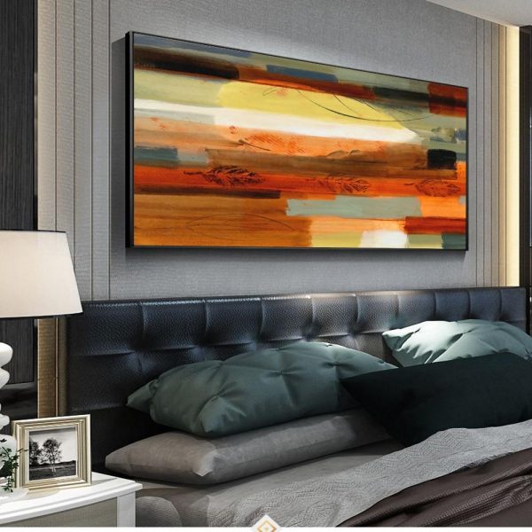 - The painting shows abstract multicolor bright lines. It will be an excellent decoration for a modern interior. It is a wonderful choice for your bed room.