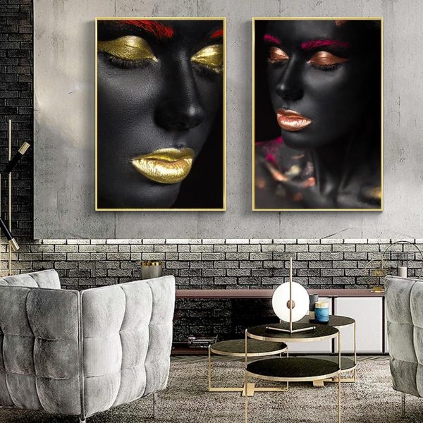 - The painting shows African black girls with sexy makeup on a dark background. This beautiful picture will be an excellent decoration for a modern interior.