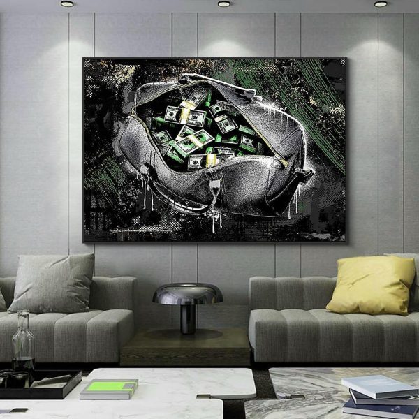 - The painting shows black bag with money. This motivating picture is a great solution for living room or bedroom.