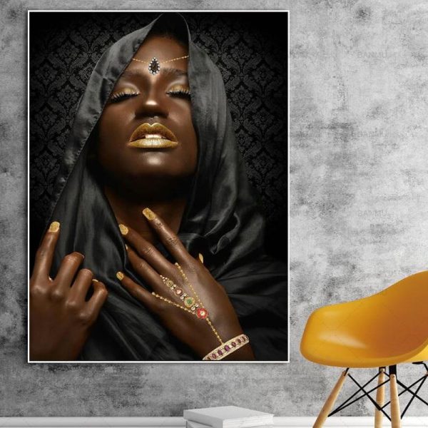 • The paintings show black women with gold necklace and jewelry. It will be an excellent decoration for a modern interior.