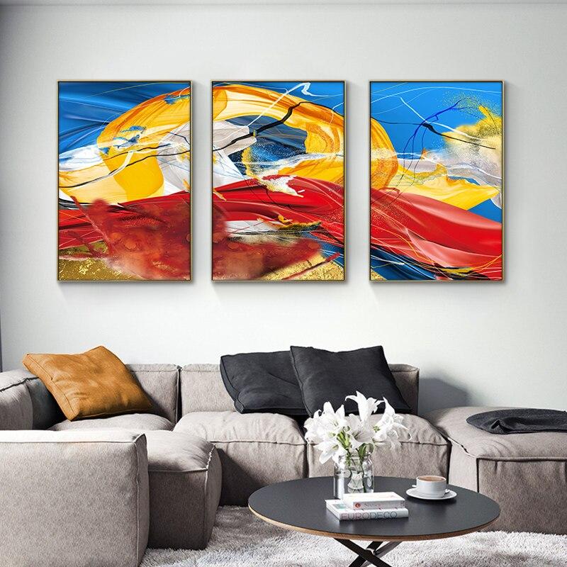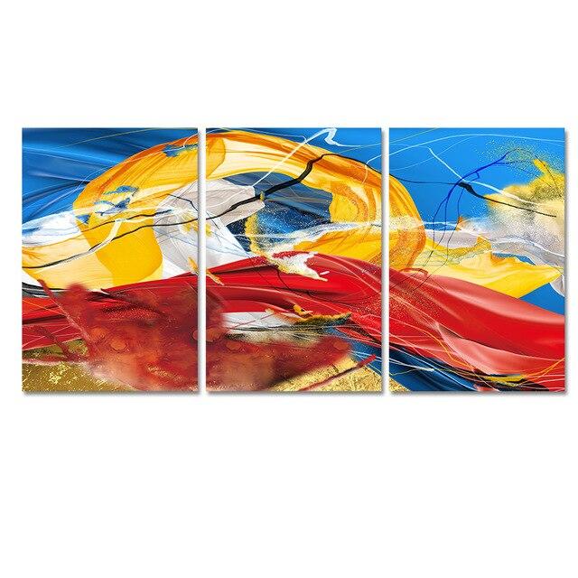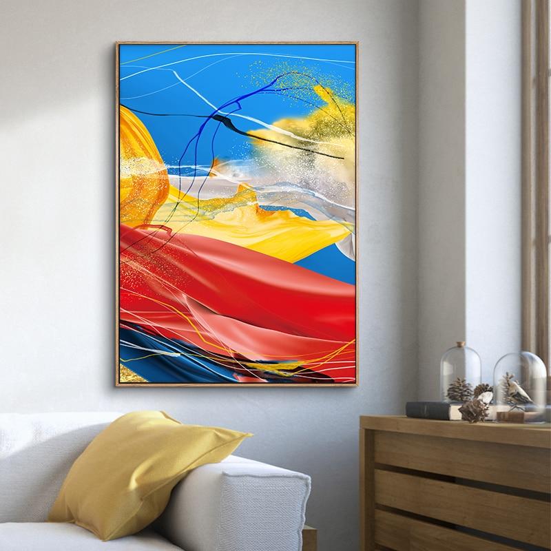 - The wonderful painting shows abstract red and yellow ribbon in blue. It will be an excellent decoration for a modern interior. The picture will add bright colors to your home.