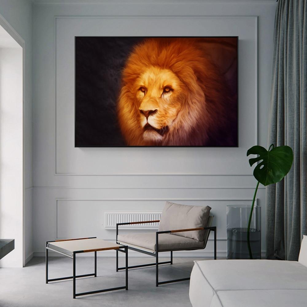 • The painting shows majestic lion on a dark background. This beautiful picture is a great solution for living room or bedroom.