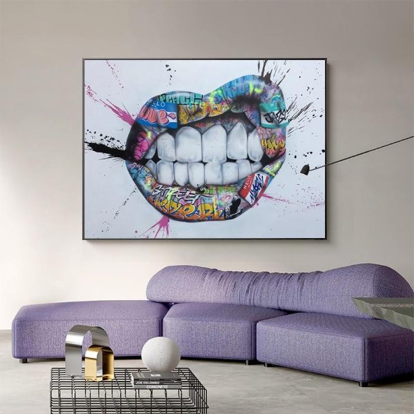 - The painting shows multicolor lips and teeth. This colorful picture will decorate your living room. It will be an excellent decoration for a modern interior.