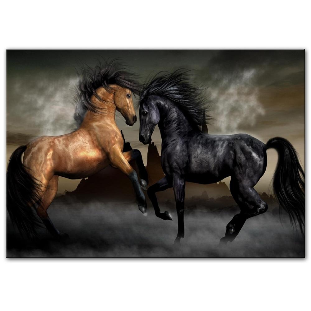 - The painting shows opposing horses on the prairie. The picture is made in bright colors. It will be an excellent decoration for a modern interior.